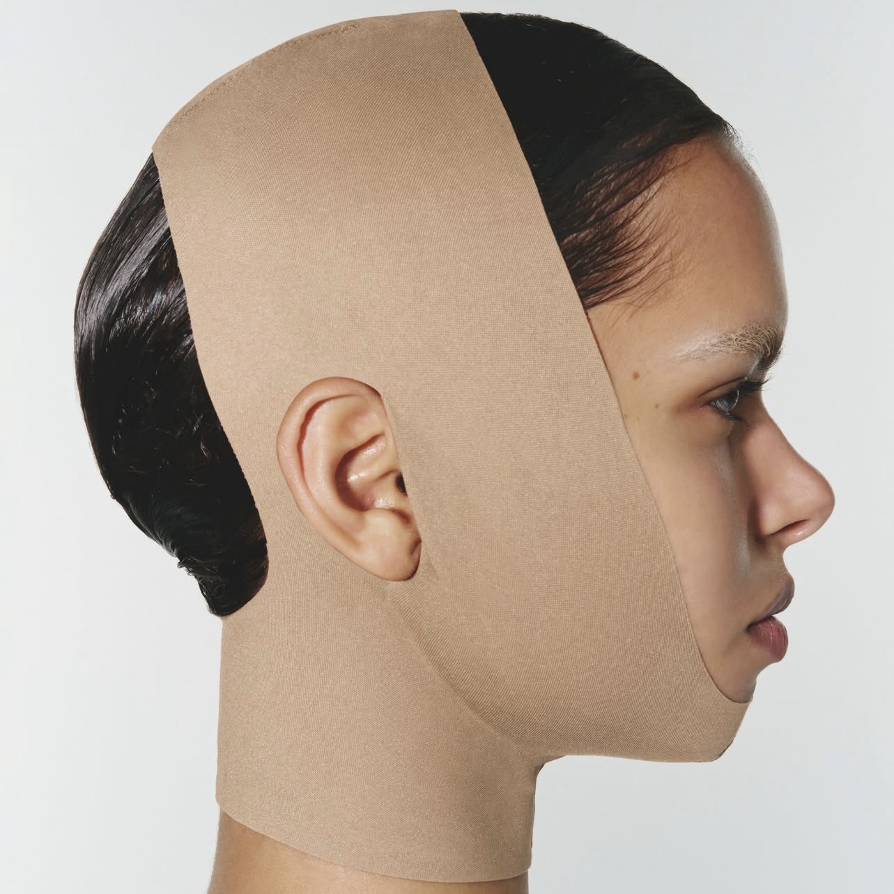 Недавно бренд Skims представил новый продукт, который стремительно привлёк внимание пользователей социальных сетей и стал объектом активного обсуждения в бьюти-индустрии. Речь идёт не о косметическом средстве или аппарате для домашнего ухода, а о лицевом бандаже — аксессуаре, который позиционируется как способ коррекции овала лица без инъекций и пластической хирургии.