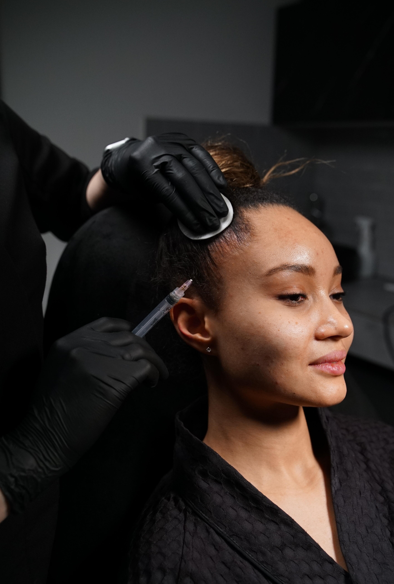 - В Blvck Clinic трихологи проводят процедуру с учетом состояния ваших волос, обеспечивая комфорт и результат.